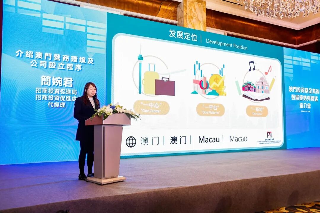 会上,澳门金管局代表介绍了本澳投资基金业务的相关法律和配套措施;澳门招商局代表讲解澳门营商环境及公司的设立程序。澳门业界代表分享了跨境投资基金业务的发展机遇,以及进一步分析本澳投资基金业务的发展趋势;有意落户澳门的投资基金管理公司代表则探讨在澳门展业的优势和机遇。活动亦设有对接洽谈环节,为三地业界搭建了交流合作平台。